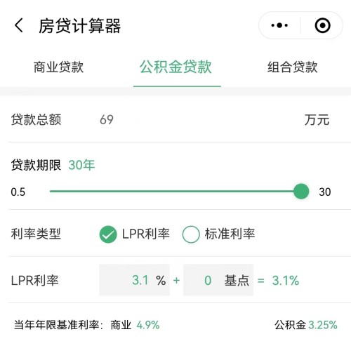 這個是按69萬 30年期限 ,公積金3.1%利率進行計算的公式